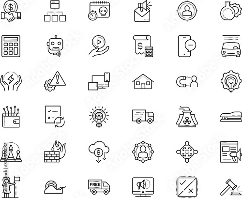 business vector icon set such as: ai, education, campaign, magnet, past, date, padlock, construction, futuristic, relations, play, lawyer, stationery, station, staple, tower, trouble, progress, diary
