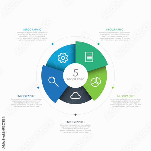 Business visualization infographic circle design template with 5 options, steps or processes. Business presentation. vector illustration