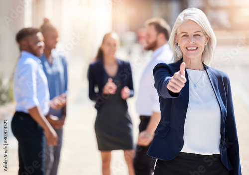 business, woman, thumb, portrait, people, mature, hand, work, outside, support, thumb up, good, leader, company, employee, positive, vision, mission, feedback, good news, approval, hand gesture, female, face, happy, hand, adult, standing, smile, team, person, businesswoman, lady, men at work, corporate, confident, professional, businessperson, signs, modern, job, colleague, businessperson, happiness, boss, workplace, staff, great, career