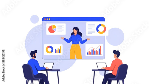 marketing, presentation, business, woman, datum, dashboard, chart, graph, statistic, report, financial, strategy, meeting, professional, corporate, office, collaboration, growth, profit, planning, speaker, seminar, training, information, digital, technology, modern, men at work, career, success, performance, communication, web, icon, character, illustration, workspace, management, research