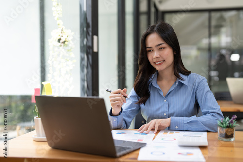 Business woman using calculator for do math finance on wooden desk in office and business working background, tax, accounting, statistics and analytic research concept
