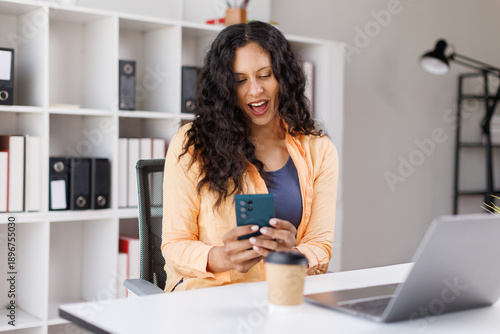 Business woman Using Phone and laptop computer and working at office with calculator document on desk, doing planning analyzing the financial report, business plan investment, finance analysis concept