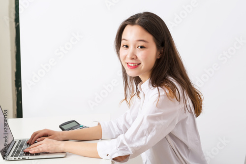 business, computer, hand, laptop, typing, beautiful, tied-up, calculate, calculating machine, click, communicate, communication, corporate, cyber, desk, office, woman, working, young, asian, businesswoman, chinese, emotional, female, girl, beauty, lovely, cute, white, shirt, smile, smiling, happy, table, sitting, to sit