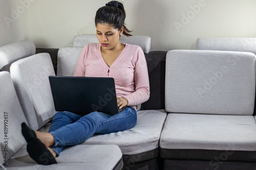 home, modern, girl, living, studies, work, professional, indoor, laptop, young, red, relaxation, people, wall, wireless, adult, homework, lifestyle, jean, woman, grey, person, sitting, business, computer, sofa, notebook, businesswoman, office, technology, beauty, pant, relax, casual attire, cyberspace, freelancer, caucasian, white, house, designer, female, beautiful, student, couch, homemaker, user, holiday, contraption, chat, good