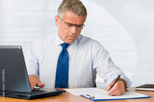 working, businessman, man, office, work, writing, notepad, business, concentration, adult, alone, businessperson, casual attire, caucasian, computer, confident, corporate, desk, document, executive, face, happy, indoor, job, laptop, lifestyle, male, manager, mature, modern, 1, pen, people, person, portrait, professional, satisfied, senior, sitting, smile, smiling, table, white, men at work, workplace, serious, note, clipboard, copy space, pensive