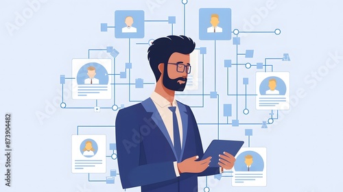 Businessman accessing HR management via cloud ERP, showcasing enterprise resource planning