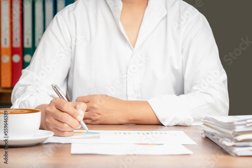 Businessman analysis financial report documents while sitting at the table in the office