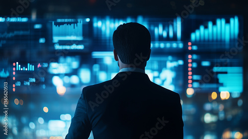 Businessman analyzes financial data for strategic business planning and investment progress. Digital innovation. AI generation