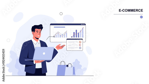 e-business, online, shopping, business, datum, marketing, strategy, digital, growth, laptop, man, businessman, chart, graph, presentation, website, commerce, bag, retail, success, concept, illustration, modern, professional, finance, technology, dashboard, analysis, web