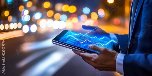 analysis, bokeh, business, businessman, chart, city, commerce, communication, datum, device, diagram, digital, display, finance, financial, futuristic, glow, graph, growth, hand, holding, illumination, information, cyberspace, investment, light, market, mobile, night, online, performance, profit, screen, stock, strategy
