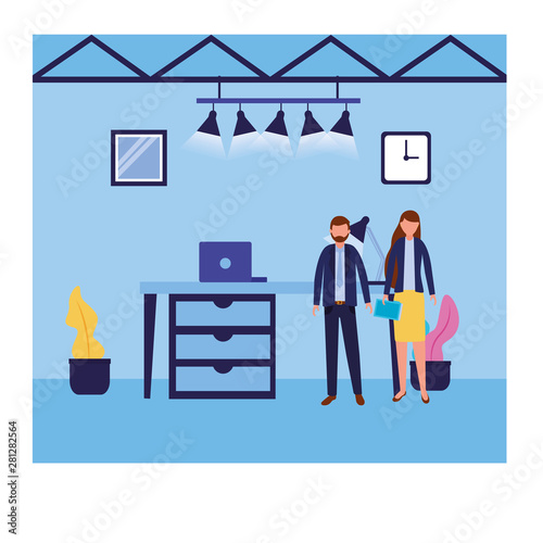businessman, businesswoman, office, desk, laptop, plant, clock, lamp, frame, avatar, cartoon, man, woman, business, businessperson, businessperson, management, vector, corporate, adult, job, occupation, strategy, men at work, professional, career, employment, planning, cooperation, negotiation, leader, colleague