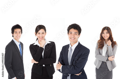 business, businesswoman, young adult, businessman, businessperson, white, white background, occupation, smiling, standing, asian, caucasian, man, woman, success, suit, formal, partnership, team, teamwork, friendship, buddy, togetherness, leadership, isolated on white, confidence, talent