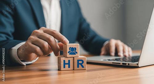 hr, human, resource, office, business, laptop, computer, desk, wooden, block, letter, logotype, corporate, professional, workplace, employment, management, administration, recruitment, talent, development, strategy, planning, organisation, company, employee, policy, procedure, training, performance, evaluation, team, leadership, communication