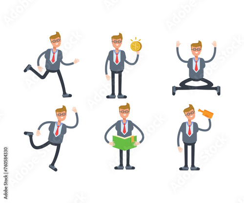 action, avatar, boss, businessman, cartoon, character, coin, comic, employee, employer, face, gesture, guy, human, illustration, job, male, man, manager, necktie, office worker, people, person, pose, read, relax, run, set, to sit, staff, racked, suit, vector, walk