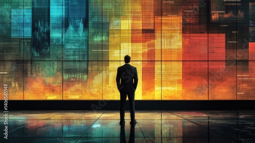 Businessman Contemplating Colorful Data Visualization