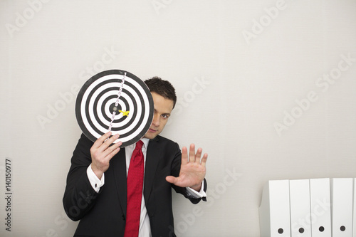 people, day, business, businessman, horizontal, office, hand, holding, dart, facet, copy space, portrait