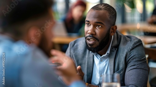 man, business, meeting, office, conversation, corporate, discussion, work, professional, partner, team, communication, people, professionalism, suit, shirt, talking, serious, focused, formal, grey, black, beard, portrait, indoor, light, modern, desk, laptop, table, chair, hot drink, water, interior, businessman, casual attire, gentleman, goggles, hair, background, person