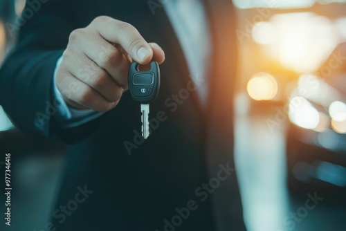 Businessman giving a car key. Getting new car concept.