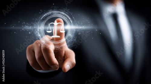 Businessman Hand Icon Pointing Justice Icon AI and Technology