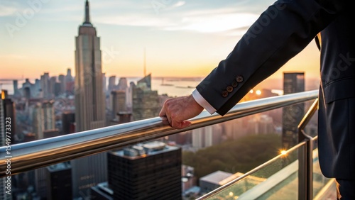 businessman, hand, railing, new york city, skyline, rooftop, skyscraper, sunset, success, ambition, man, suit, executive, corporate, finance, leadership, view, city, urban, building, architecture, modern, achievement, future, vision, power, professional, wealth, prosperity, growth, determination, opportunity, america, us, travel, tour tourism, metropolis, downtown, golden hour, evening, horizon, new, york, empire, state, gold, hours