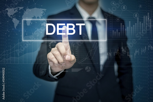 Businessman hand touching DEBT button on virtual screen