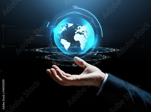 businessman hand virtual earth projection