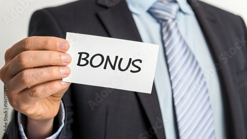 bonus, businessman, paper, holding, word, white, background, business, concept, finance, success, investment, growth, money, profit, career, job, work, office, male, man, person, adult, hand, signs, text, message, note, document, presentation, strategy, planning, management, marketing, economy, financial, opportunity, achievement, reward, be of use, gain, increase, value, wealth, future, motivation, leadership, corporate, professional