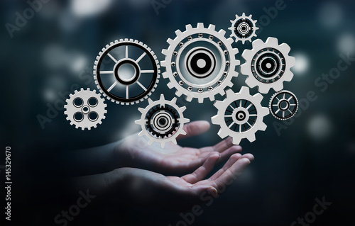 gear, cogwheel, cog, wheel, success, solution, innovate, innovation, engine, engineering, mechanism, businessman, business, man, technology, device, digital, tech, strategy, invest, investment, crisis, connect, connection, information, concept, revenue, office, blue, grey, silver, red, finance, multimedia, industry, control, collaborate, support, modern, hand, hold