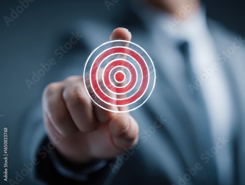 Businessman holding goal icon represent strategic planning, Success. Teamwork, Business strategy, Growth, Marketing focus, Investment planning, Leadership mindset aimed at achieving long-term success.