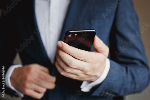 businessman holding mobile phone