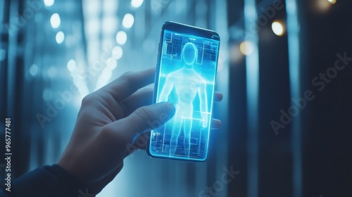 technology, futuristic, business, businessman, smartphone, hologram, interface, user, digital, blue, hand, holding, datum, communication, cyberspace, innovation, network, wireless, connection, mobile, device, modern, app, design, screen, virtual, reality, future, science, cyber, glow, light, dark, background, indoor, office, professional, analysing, human, body, scan, medicals