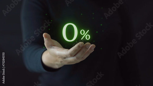 Businessman holding zero percentage on hand with copy space for sale discount promotion for Black Friday and merry Christmas happy new year period.