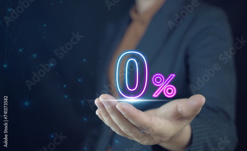 Businessman holding zero percentage on hand with copy space for sale discount promotion for Black Friday and merry Christmas happy new year period.