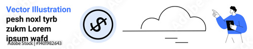 business, finance, cloud, technology, innovation, digital, service, startup, online, man, tablet, pointing, dollar, money, economy, growth, strategy, work, future, datum, connection, minimal, remote, metaphor, flat, concept, text, banner, website, web, card, landing, page, blue, black, professional, computing, marketing, network, investment, planning, vector, illustration, icon