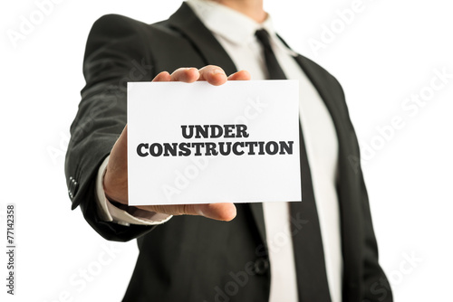 under, construction, under construction, maintenance, incomplete, error, broken, repairing, site, web, progress, website, work, page, repair, writing, unfinished, support, card, paper, white, message, signs, board, business card, text, business, businessman, isolated, background, person, man, suit, hold