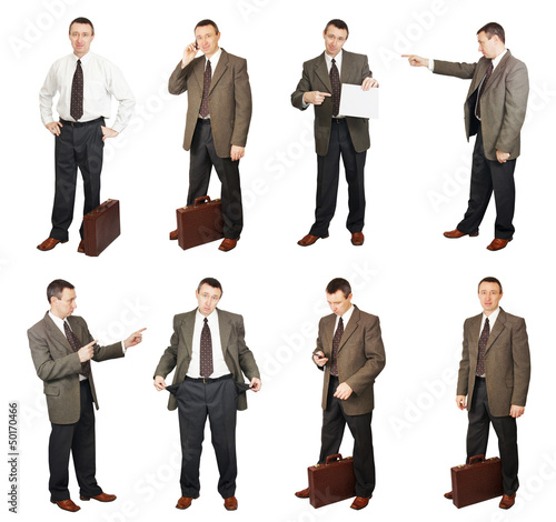man, adult, male, business, businessman, success, successful, fortune, caucasian, european, portrait, aged, senior, person, standing, shirt, studio, isolated, white, background, cut-out, middle-aged, case, bag, suitcase, coat, situation, diverse, various, suit, trousers, shoe, set, collection, talk, tell, speak, say, dial, number, phone, mobile, call, connection, communication, contraption, concept