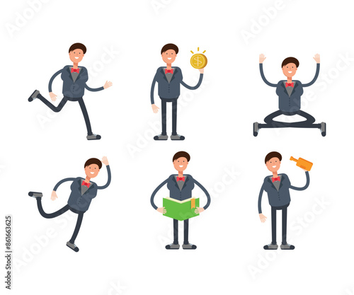 action, book, boss, businessman, cartoon, character, coin, comic, drink, employee, human, illustration, manager, money, office, office worker, organisation, people, person, pose, read, relax, set, excrement, to sit, staff, suit, vector