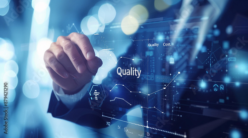 businessman, digital, quality, interface, technology, futuristic, interaction, business, innovation, screen, datum, analysis, hand, virtual, corporate, modern, professional, tech, management, performance, improvement, efficiency, touch, smart, corporate environment, quality control, digital display, advanced technology