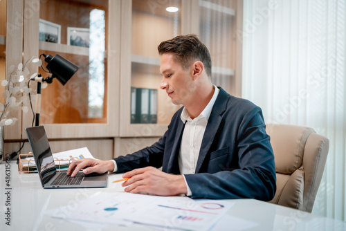 Businessman looking at a computer monitor during his working day in the office.