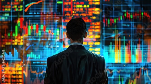 Businessman looks at graphs and charts showing market growth trends. Leverage this valuable information to inform strategic decisions and capitalize on emerging opportunities.