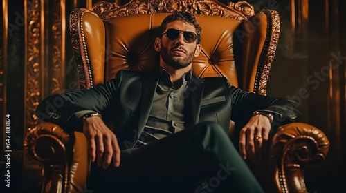businessman narcissus, sitting in a luxurious chair