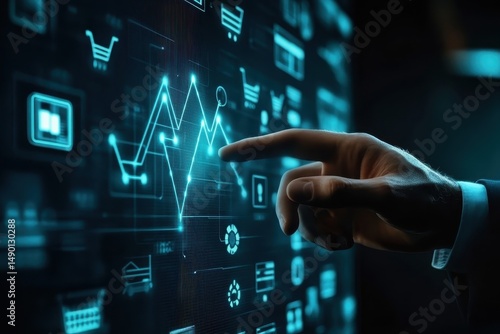 business, e-business, growth, virtual, graph, futuristic, shopping cart, statistic, datum, marketing, finance, strategy, innovation, businessman, performance, success, technology, touch screen, hand, computer, touch, screen, buttons, digital, concept, interface, cyberspace, network, finger, connection, tech, communication, software, future, abstract, people, push