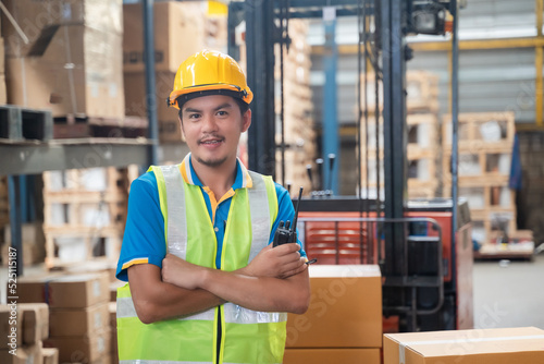 businessman professional Worker holding tablet on warehouse logistic network distribution and smart transportation Logistic import export and industry warehouse management system.