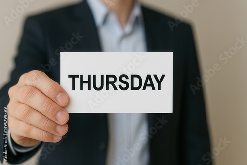 th, businessman, business, card, holding, showing, day, week, suit, work, office, message, information, schedule, calendar, date, time, plan, planning, reminder, important, deadline, appointment, meeting, event, task, closeup, front, white, text, black, concept, communication