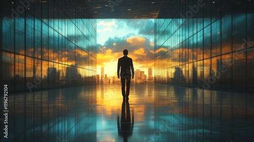 businessman, silhouette, sunset, corridor, skyscraper, urban, confidence, modern, vibrant, walking, city, career, ambition, hope, professional, environment, architecture, journey, success, evening, skyline, light, shadow, exploration, solitude, corporate, glasses, horizon, strategy, leadership, transition, opportunity, perspective, beauty, inspiration, future, challenge, progress, design, freedom, imagination, innovation, determination, calmness, connection, earth, possibility, goal