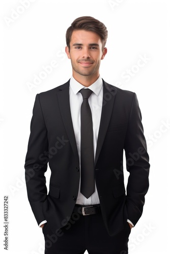 accessory, adult, apparel, beard, black, blazer, bow tie, businessman, button down shirt, cheerful, clothing, coat, confident, copy space, cut-out, dress shirt, face, facial hair, fashion, front view, full suit, happiness, human, human hair, isolated, jacket, male, mature adult, man, menswear, necktie, one person, outerwear, person, pocket, portrait, shirt, sleeve, smile, smiling, standing, studio shot, suit, teeth
