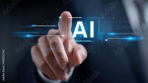 ai, artificial intelligence, technology, businessman, futuristic, digital, interface, innovation, datum, cyber, high technology, modern, glow, network, interactive, screen, blue light, abstract, concept, professional, automation, information technology, science, progress, software, hand, closeup, graphic, buttons, cutting edge, corporate, futurism