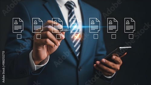 Businessman using a digital tablet and mobile phone with virtual icons displayed