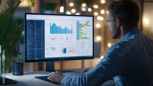 Businessman using ERP software in modern office environment