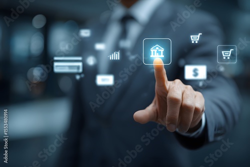 businessman, banking, online, finance, technology, digital, application, virtual, screen, interface, touch, finger, suit, business, investment, money, currency, dollar, chart, graph, shopping, cart, e-business, payment, transaction, bank, icon, symbol, modern, future, innovation, connection, network, datum, security, protection, wealth, management, growth, success, strategy, planning, analysis, marketing, sale, economy, global, cyberspace, communication